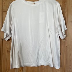 Linneblus från MQ med en avslappnad passform och stilren krage. Blusen har v-ringning och 3/4-ärmar med breda manschetter. Enkel design som passar både till vardag och fest. Material är 88 % linne och 12 % polyamid, lite glansigt ser ut som linne och siden blandat och skrynklar sig inte. Inte använd mycket, vilket man ser på bl a etikett som har text kvar. 55 cm mätt rakt över framstycke under ärm, 63 cm mätt från nacke till nederkant, ärm 49 cm mätt från axelsöm till manschett.