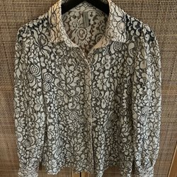 Söt, cremevit ärmlös blus med spetsdetaljer upptill och nedtill. Blusen har en knappslå med knappar i ryggen.