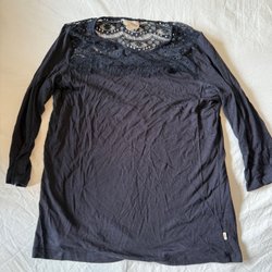 Jag har sytt ihop den med några stygn för att den var lite lös på mig över brösten. Se bild.