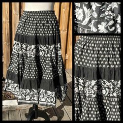 Vacker hemsydd kjol i bomull. Dragkedja och knapp bak. Fin detalj fram med sidenband. Bra skick.