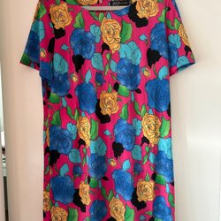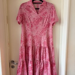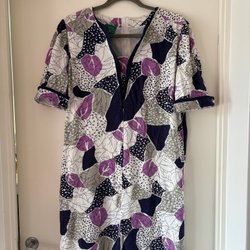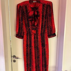 Härlig röd blå mönstrad retro blus topp Lindex M