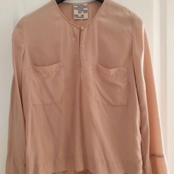 Elegant rosa blus med lång ärm och drapering vid halsen. Passar perfekt för julens alla festligheter. Tyg som inte skrynklar. Normal storlek 38.