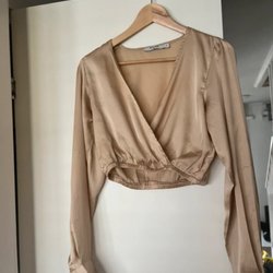 Jättefin blus med v-ringning och blomdetalj från NA-KD. Knappt använd.