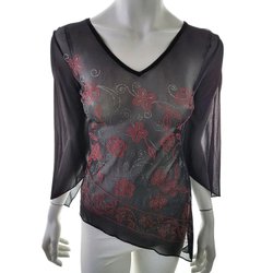 GINATRICOT Blus för Dam Svart 34 3/4 ärm V-ringning