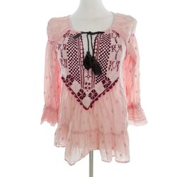 ODD MOLLY Blus för Dam Broderi Krämfar gad XS 3/4 ärm Bomull 100% Nyckelhålshals