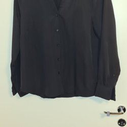 Elegant svart blus med hög krage och långa, vida ärmar. Blusen har en lös passform och en lätt transparent finish. Märkt med xs men stor i storlek passar S. Lyocell 80%. Mycket fin till fest! Aldrig använt. ( lappar finns ej kvar)