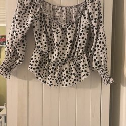 Svart blus med långa ärmar och volangdetaljer. Blusen har en knytning i ryggen. Passar M-L