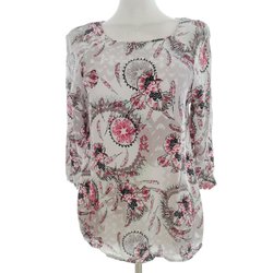 DUNNES Blus Leopardmönster Grå 44 3/4 ärm Viskos Draperad urringning