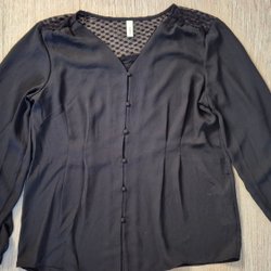 Svart kortärmad blus med v-ringning. Blusen har en avslappnad passform. Ny med lapp.