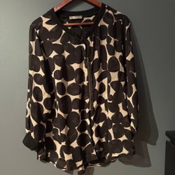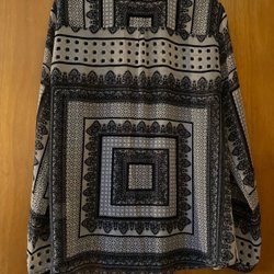 Ärmlös blus med ett svartvitt mönster. storlek L. 100% polyester, frakt enl. postens taxa