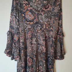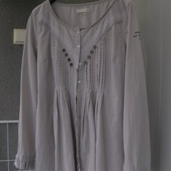 En vit Odd Molly blus med broderade detaljer och en spetskant. Blusen har en rund halsringning och korta ärmar. Den har en liten knappstängning i fram och är lätt och luftig. Storlek 1 motsvarar S men passar även en M