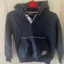 Snygg och elegant blus i vitt med marina detaljer. Kortärm, krage och snygg dubbelknäppning, små axelvaddar för rätta stuket. Blus i mycket fint skick som ny. Märket Kellermann är känt för sin klassiska design och fina kvalité. Material 100 % polyester och extra knapp följer med. Mått över byst 57 cm och längd 65 cm.