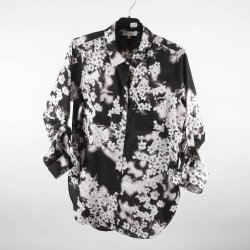 Snygg och elegant blus i ett iögonfallande mönster med rosa, orange och vita toner. Blusen har en klassisk krage, långa ärmar med knappar vid manschetterna och en knappslå. Passformen är rak. Användes 2 gånger