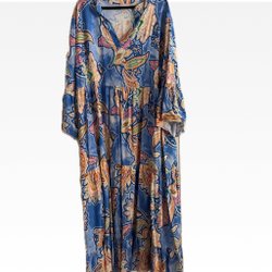 60 cm över bysten, längd från nacke 75 cm.
