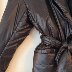 Blus med texturerat tyg och krage. Knappstängning framtill och manschetter med knappar. Puffärmar som slutar vid armbågen.