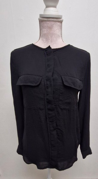 Svart blus( HM) med långa ärmar och rund halsringning. Blusen har två bröstfickor med lock.