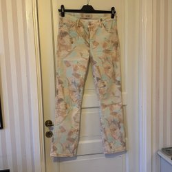 Långärmad blus i en ljus nyans med fransdetaljer längs sömmarna och ärmsluten. Blusen har en rund halsringning och en lös passform med vida ärmar. Längd bak 57,5 cm