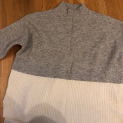 Långärmad tröja med krage och knappar framtill. Liten defekt finns se bild