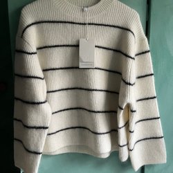 En grå/vit stickad tröja i storlek XS.