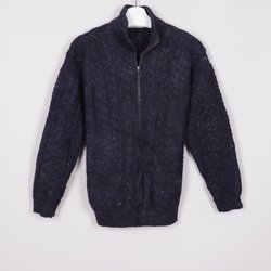Stickad Ulltröja Huvtröja Ecuador 100% Ull Dam Stl M (se mått) Grå Långärmad