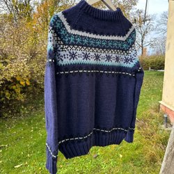 Blå tröja handstickad stl M fint skick