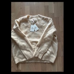 Stickad tröja från Indiska i en varm gul nyans. Delvis ull.