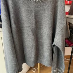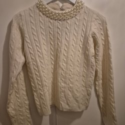Mjuk härlig Tröja med pärlor och hålmönster, knappt använd. Köpte fel storlek