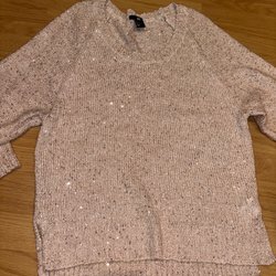 Stickad tröja i en generös storlek.