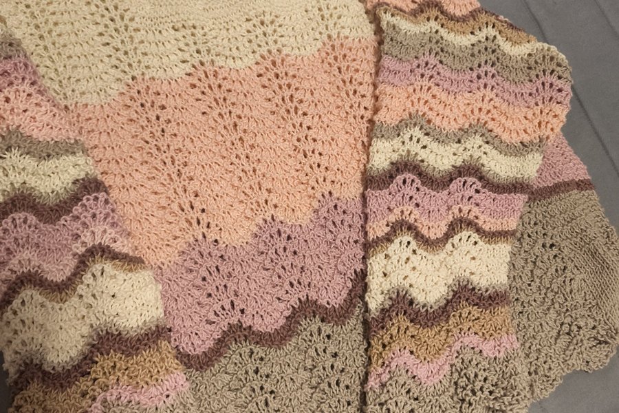 Fint stickad tröja i vågigt mönster med olika färger. Tröjan har en rund halsringning och långa ärmar.