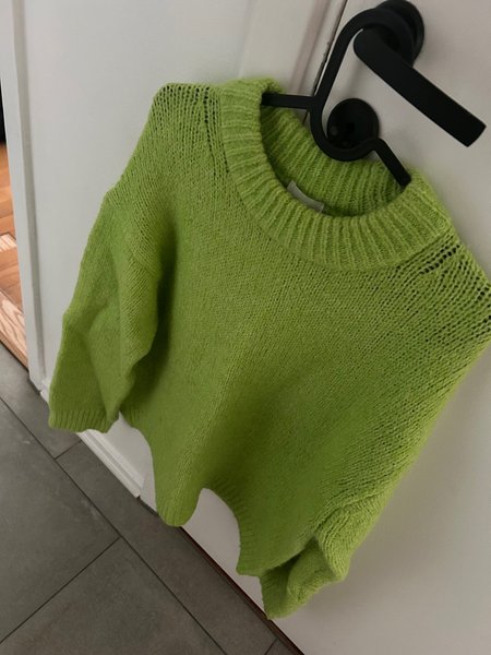 Grön stickad tröja i premium quality med rund hals och långa ärmar. Tröjan har en avslappnad passform.