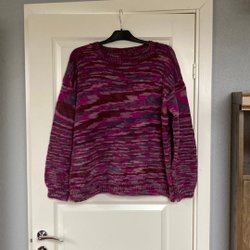 Stickad tunn tröja i en stark rosa färg. Tröjan har långa ärmar och en rund halsringning. En unik detalj är den öppna ryggen, vilket ger tröjan en modern och stilfull touch.