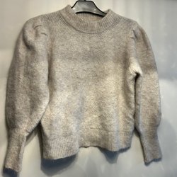 Stickad tröja med ett vackert flätmönster framtill och ballongärmar. En stilren och bekväm tröja som passar perfekt för både vardag och fest.