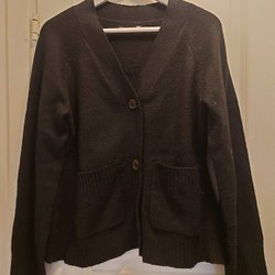 Tröja med långa ärmar och V-ringning. Ribbstickad mudd vid ärmslut och nederkant.