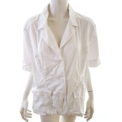 Isolde Storlek 42 Vit Kavaj med knappar Bomull Långärmad Fickor Volang