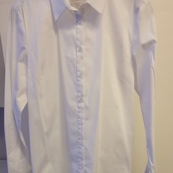 Elegant, kort vit kavaj med klassisk krage och öppning framtill. Perfekt för att komplettera en outfit.