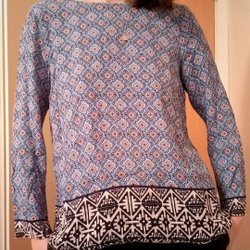 Storleken är en 36 (S), dock lite tight under armarna så jag rekommenderar den mer till någon med storlek 34 (XS).