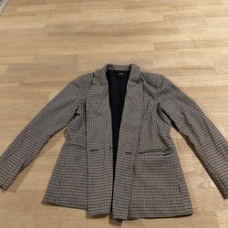 Beige blazer med forseglingslommer i siderne. Den er meget smuk og har ingen tegn på slid. Den er næsten som ny.