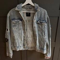 Färgglad kostym med ett unikt mönster i blått, rött och lila. Kavajen har en klassisk krage och en enkelknäppning fram. Byxorna har en avslappnad passform med vida ben. Byxor stl 38 och kavaj 36