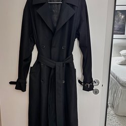 Säljer en brun fake läder kappa/trenchcoat från NA-KD med knäppning och bälte. Sparsamt använd. Storlek 38.