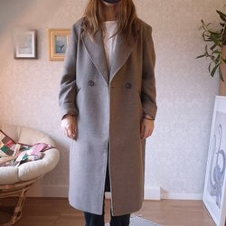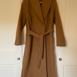 Brun kappa med långa ärmar, krage och knäppning framtill. Kavajen har fickor fram och ett bälte i midjan. Storlek 38. Märke: Casual By Halens, 100% bomull