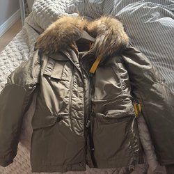 Brun teddykappa med krage och knappar framtill. Perfekt för att hålla värmen under kyliga dagar.