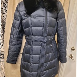 Elegant, svart dunjacka från Redgreen. Jackan har en stor krage och dragkedja framtill. Den har även fickor och ett band i ryggen som kan knytas för att justera passformen. Storlek M. Titta gärna mina övriga auktion