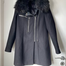 Svart fuskpäls kappa från NA-KD. Kappan har en stor krage och knäpps med knappar.