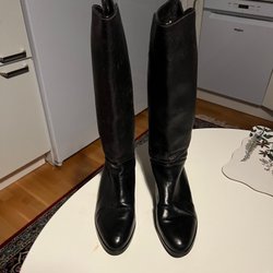 Klassisk svart duffelkappa från Burberrys med det ikoniska rutiga fodret. Kappan har en huva och knäpps med traditionella duffelknappar. En tidlös och elegant ytterplagg.