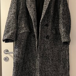 Elegant kappa från H&M. Den har en klassisk dubbelknäppning, bred krage och ett justerbart bälte i midjan för en smickrande silhuett. Perfekt för både vardag och fest.