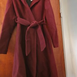 Beige H&M kappa. Dubbla knappar framtill. Kappan har en krage som kan fällas upp. Strl. 36.