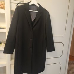 Elegant ljusgrå kappa med dubbelknäppning och klassisk krage. Kappan har en stilren design med dekorativa knappar och en smickrande passform. Perfekt för både vardag och fest. Nypris 5500:- använd fåtal gånger
