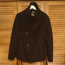 Turkos kappa med huva och tre knappar framtill. Kappan har fickor fram. Storlek 46, tyg i polyester blandning. Färgen är mörkare än vad det ser ut på bilden.