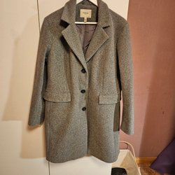 Grå kappa med rutigt mönster i rött och svart. Kappan har en avtagbar huva, dubbelknäppning framtill och ett knytskärp i midjan. Ärmsluten har dekorativa knappar.