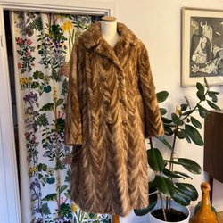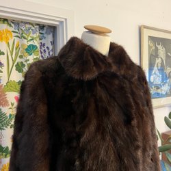 Elegant pälsjacka i en vacker brun nyans. Jackan har en klassisk design med en hög krage och en smickrande passform. Perfekt för att hålla värmen med stil under kyliga dagar. Passar från S till M. Mycket bra skick